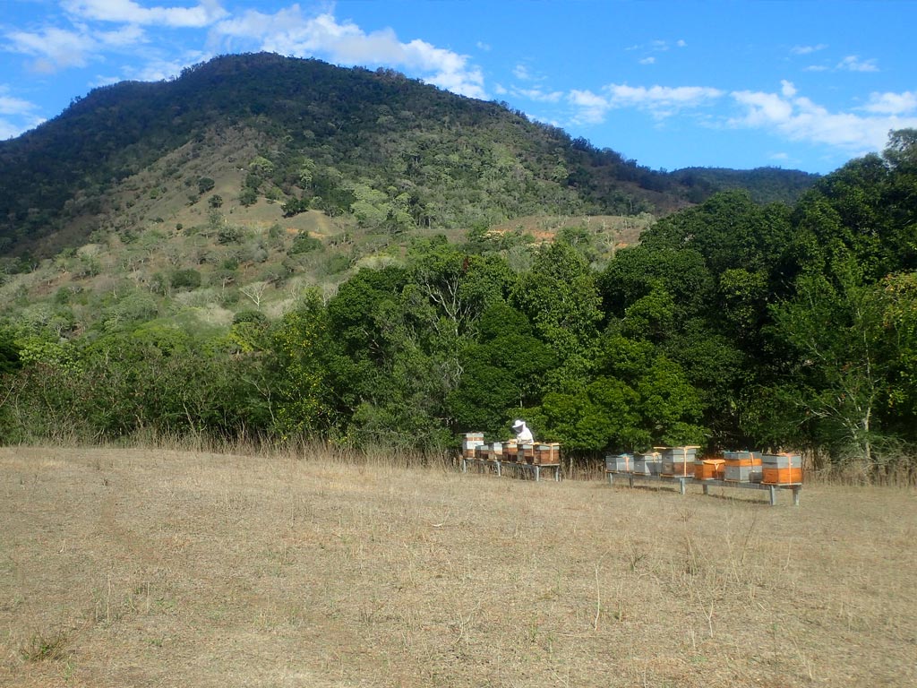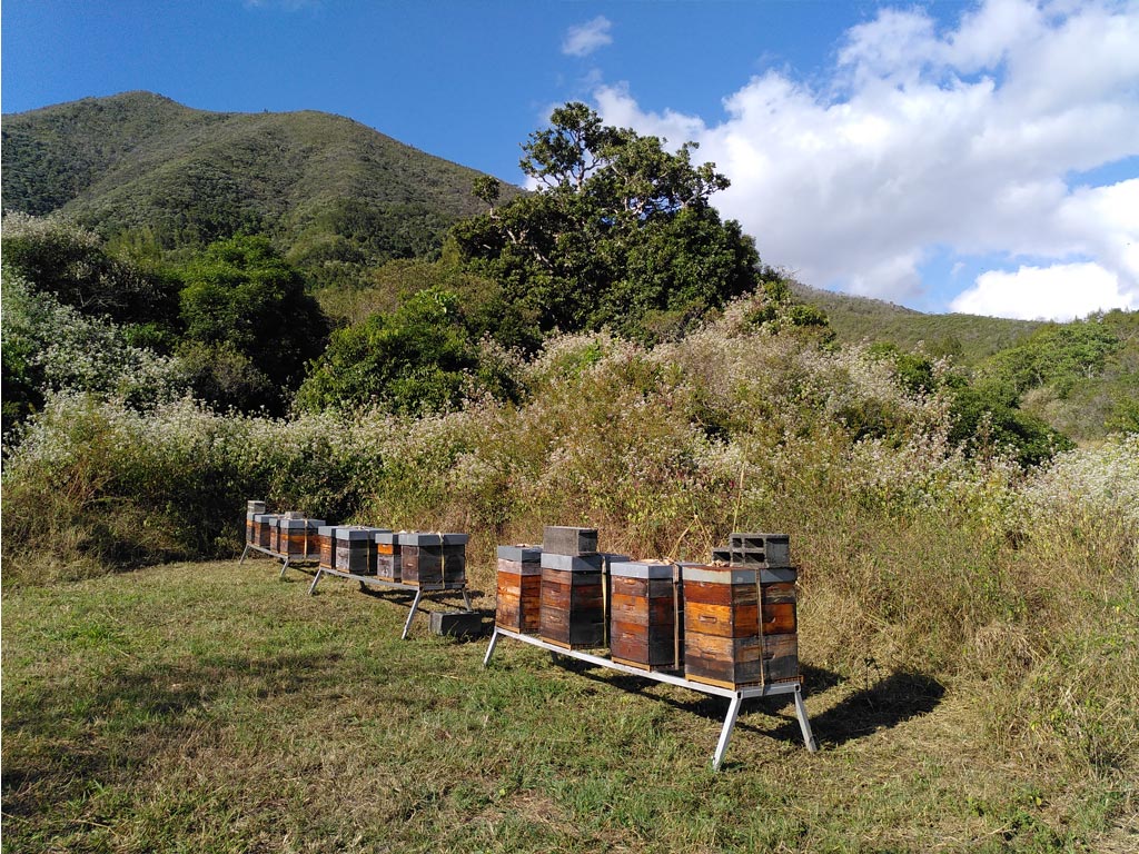 Notre cheptel est constitué d'une centaine de ruches de production de miel et d'une soixantaine de colonies pour l'élevage (reines fécondées et essaims), réparties sur neuf ruchers dans la région de Païta (Tomo, Karenga, Cheval, Col de la pirogue, Ferme Gaïa, Railstation et Katiramona).